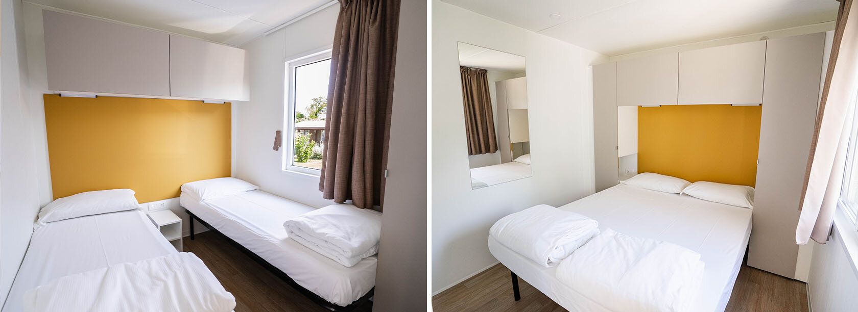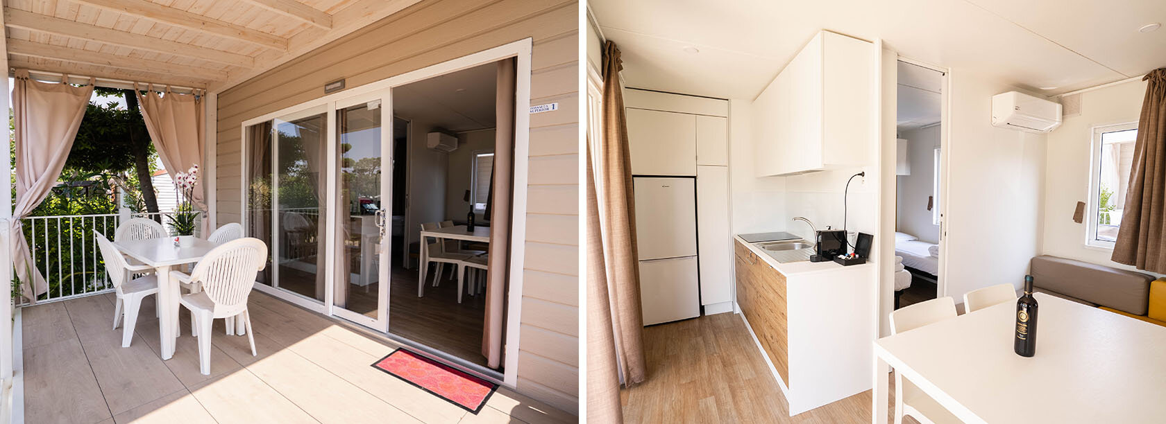 Anfang 2023 installiert, bieten die neuen Mobilheime allen Komfort, den man für einen Campingurlaub am Gardasee braucht. Sie befinden sich in der Nähe des Sees, damit die Strand-Mobilheim-Strecke bequemer ist. Sie sind teilweise beschattet, sodass Sie auch während der Stoßzeiten im Freien entspannen können.