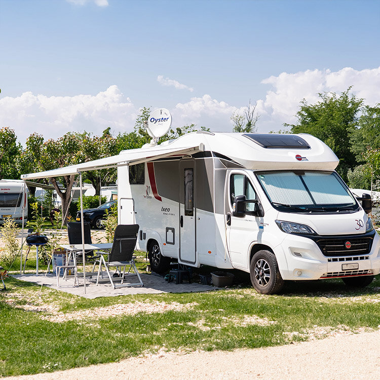 Diese Stellplätze wurden entworfen, um maximalen Raum und Komfort für die größten Wohnmobile zu bieten. Mit einer Fläche bis 100 qm sind sie ideal für alle, die während ihres Urlaubs großzügigen Freiraum suchen. Strategisch gelegen, ganz in der Nähe der Sanitäranlagen und des Campingzentrums, sind sie mit 16 Ampere Strom, Wasseranschluss und -abfluss sowie WLAN ausgestattet. Perfekt für alle, die Komfort und Praktikabilität genießen möchten, ohne auf die Freiheit des Campings zu verzichten.